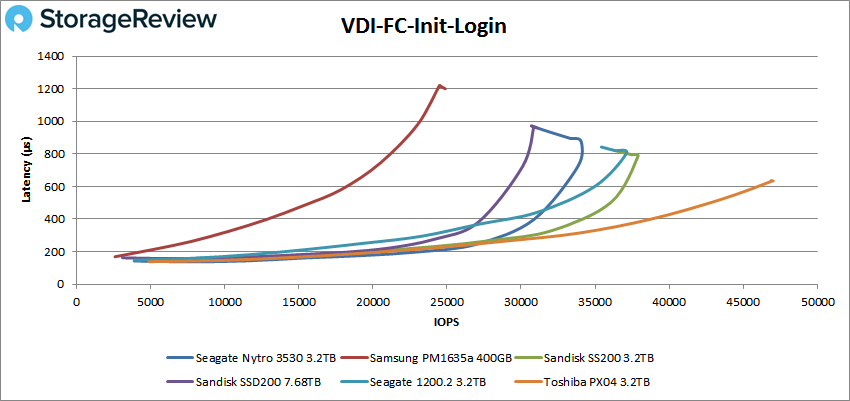 La connexion initiale du VDI FC a vu le Seagate culminer à 30 741 IOPS avec une latence d’environ 959 ms.
